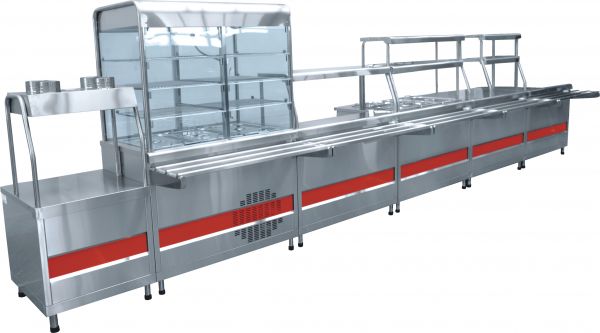 Линия раздачи питания Аста. Линия раздачи для столовой,кафе,ресторана общепита. Профессиональная раздаточная мармитная линия раздачи пищи Аста предназначена для продажи и кратковременного хранения и демонстрации готовых блюд, а также для раздачи холодных закусок, первых, вторых блюд, горячих и холодных напитков, хлебобулочных кондитерских изделий, обеспечения клиентов столовыми приборами и подносами. Стандартная линия раздачи пищи комплектуется из элементов раздачи индивидуально (в зависимости от проходимости и других особенностей заведения общепита), как правило имеет основной набор таких элементов, как -прилавок для приборов и подносов, холодильный прилавок или прилавок-витрина холодильный предназначенный для демонстрации выкладки салатов и холодных закусок, мармит для 1-х блюд двух или трех конфорочный, мармит для 2-х блюд паровой или мармит с воздушным обогревом гастроемкостей, прилавок для горячих напитков или нейтральный модуль с полками дополнительной выкладки пирогов, выпечки и других хлебобулочных изделий, кабину кассовую универсальную для установке кассового аппарата. www.torg-snab.com. Оборудование для столовой,кафе и ресторана.Столовое оборудование для столовых. Профессиональное оборудование для общепита,пищевых производств и торговли. Мебель для предприятий общественного питания. Мебель школьная ученическая для учебных классов школы, высших образовательных учреждений. Производство мебели на металлокаркасе для общепита, производство школьной ученической мебели и нейтрального кухонного оборудования на производственном комплексе ПКФ ТоргСервисСнаб в Екатеринбурге. Комплексное оснащение оборудованием и мебелью. Поставка,продажа профессионального оборудования для общепита и торговли купить оборудование с нашего регионального склада в городе Екатеринбург, Москва, Санкт-Петербург, Краснодар, Ростов-на-Дону, Симферополь, Ставрополь, Нижний Новгород, Пятигорск, Чебоксары, Самара, Ярославль, Йошкар-Ола, Волжск, Уфа, Челябинск, Пермь, Тюмень, Омск, Новосибирск, Хабаровск, Владивосток или доставляем транспортными компаниями по всей территории России. ТОРГСЕРВИССНАБ. www.torg-snab.com