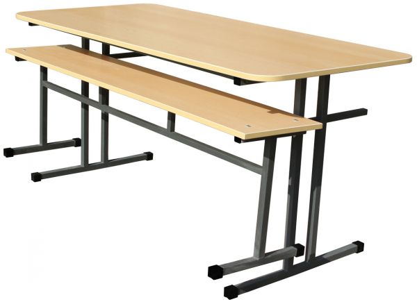 Стол обеденный 1200*700, верх пластик HPL, с планками подвесами для скамеек. Обеденный стол для столовой, кафе. Мебель для общепита и торговли. Производство мебели на металлическом каркасе
